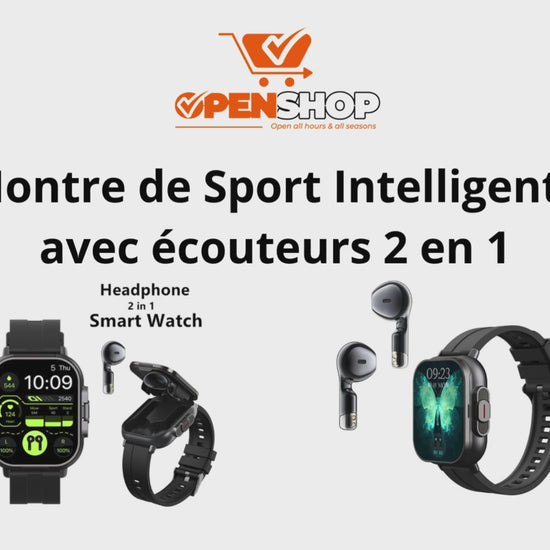 Montre de sport intelligente 2 en 1 avec écouteurs TWS Bluetooth sans fil, appels, moniteur de santé, montres d'enregistrement de fitness avec casque.